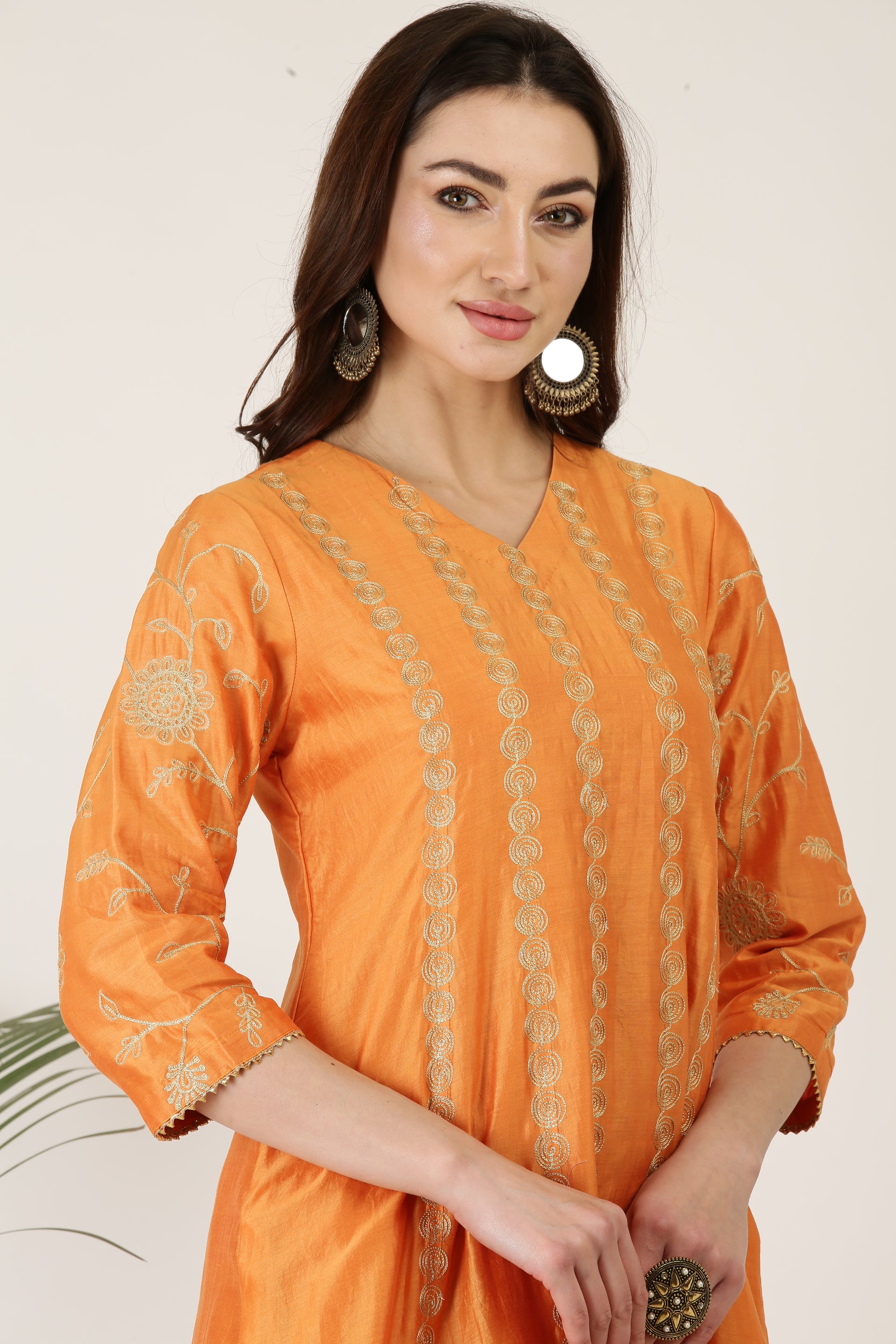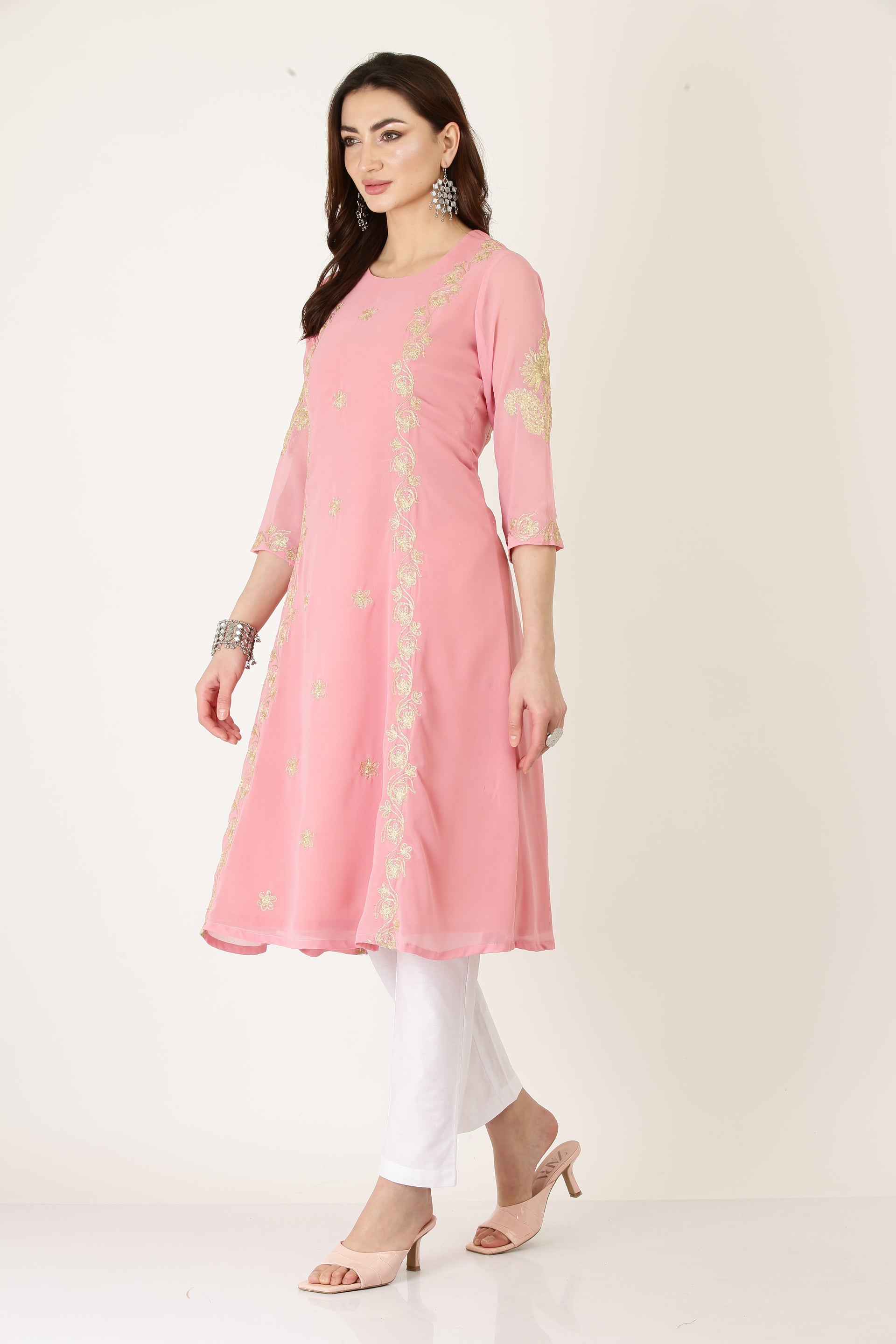 Kaanchie Nanggia Black Embroidery Georgette Kurta with Skirt & Dupatta (Set of 3)