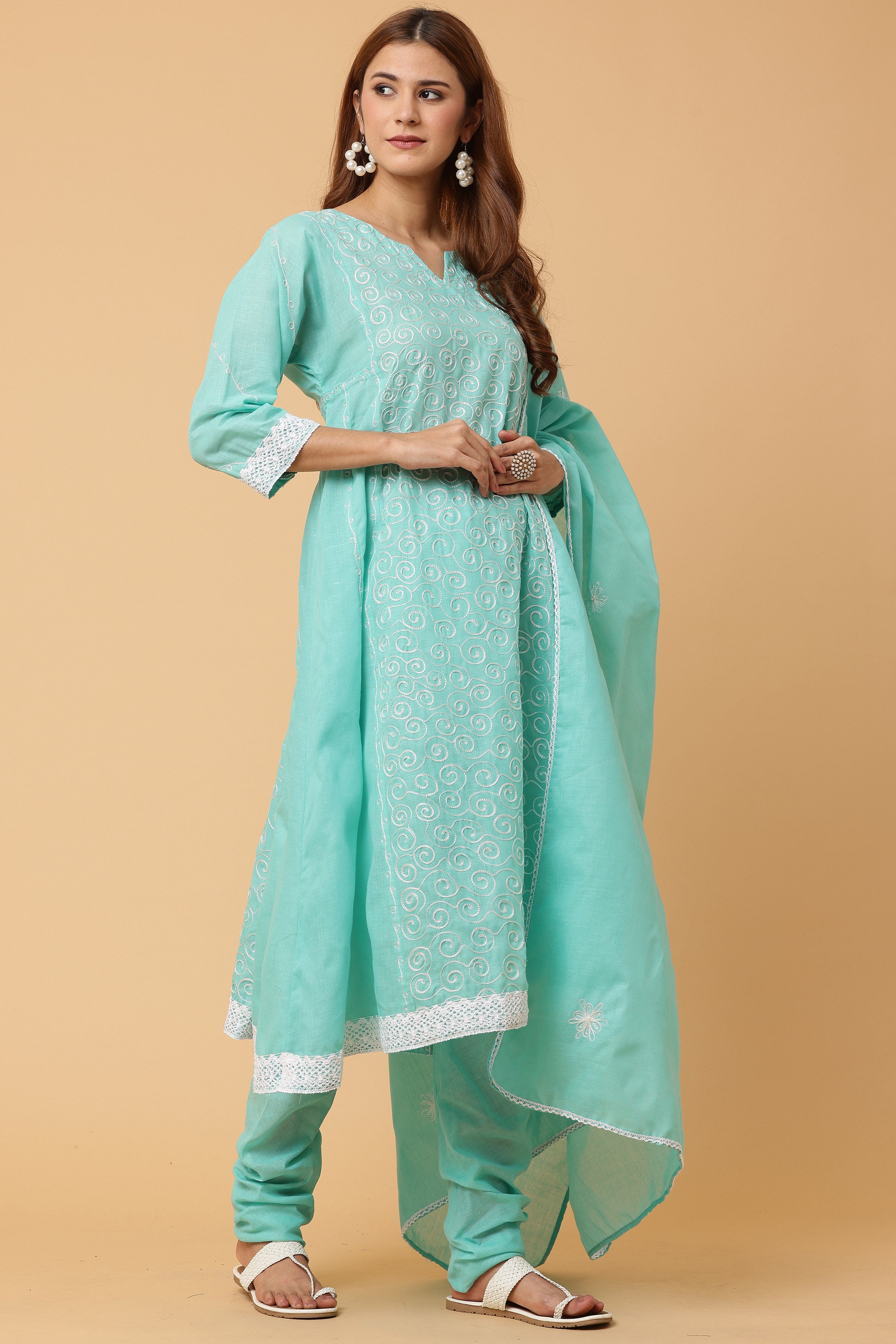 Kaanchie Nanggia Blue Embroidered Ready to Wear Lehenga & Kurta With Dupatta (Set of 3)